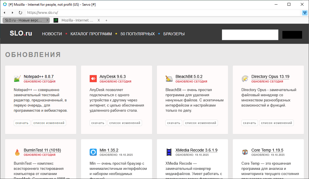Servo — браузерный движок, а точнее движок обработки контента, созданного различными веб-технологиями. Адресован, исключительно, разработчикам и энтузиастам. Свободный, открытый проект. Можно скачать Servo для Windows, GNU/Linux, macOS, Android и iOS.