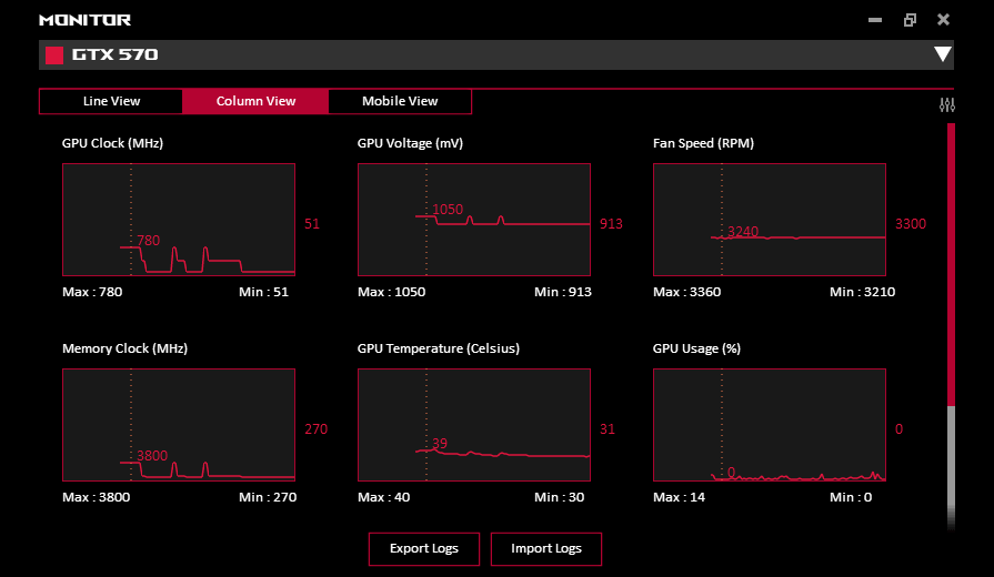 ASUS GPU Tweak имеет набор настроек для разгона видеокарты и прочих сопутствующих опций, типа понижения скорости вращения вентиляторов. Пользователю доступна как ручная настройка, так и предустановленные наборы настроек в виде профилей (к примеру, высокая производительность или бесшумный режим). Поддерживается ряд удобств, типа автоматической смены профиля при достижении определенных значений. Автоматическая смена профиля очень полезна при экстремальных нагрузках. Также стоит отметить возможности понижения напряжения (андервольтинг) и частоты и управление вентиляторами.