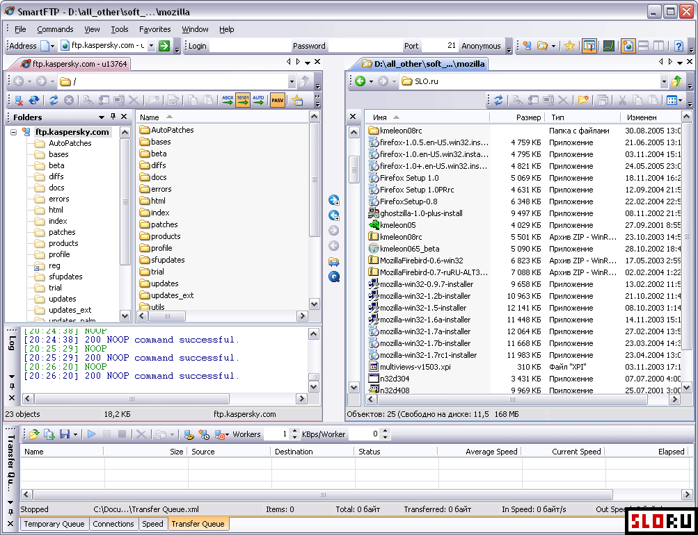 SmartFTP — удобный, быстрый и надежный FTP-клиент. В программе имеется наличие всех необходимых функций. Удобный интерфейс, стабильность, несколько соединений, поддержка SSL, поддержка IPv6; поддержка FXP, проверка целостности передач, поддержка прокси и фаервола, возможность спланировать очередь, кэширование папок и прочие удобства. Остается добавить, что программа бесплатная для некоммерческого использования.
