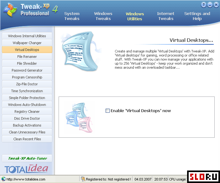 Один из лучших твикеров. Программа используется для тонкой настройки и оптимизации работы операционной системы Windows XP. Оптимизирует и настраивает не только программное обеспечение, но и железо. Выключает в себя аж 56 утилит на все случаи жизни. Настоятельно рекомендуется всем пользователям Windows.